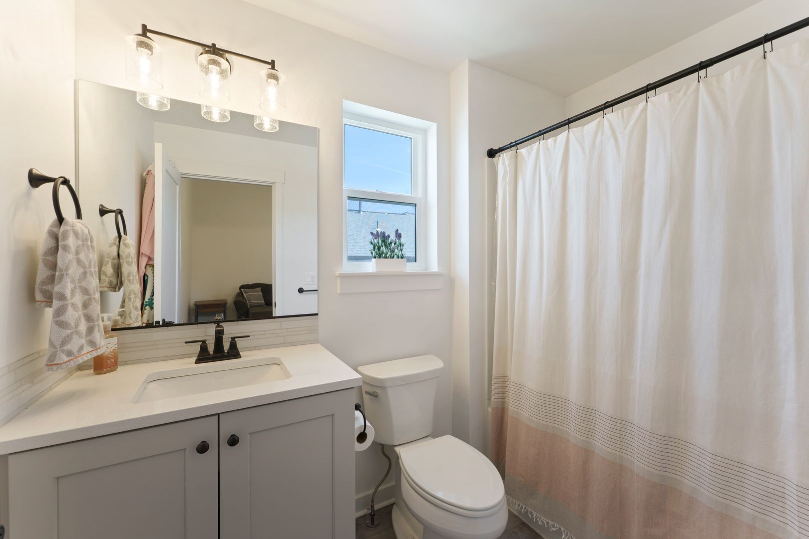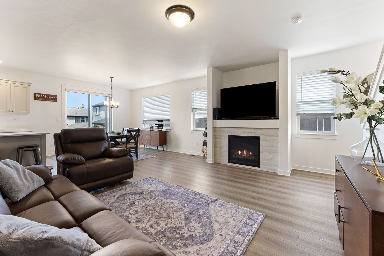 The spacious upstairs loft is perfect for a home office, workout space, playroom, or second living area. Custom blinds throughout the home add a polished, finished touch.